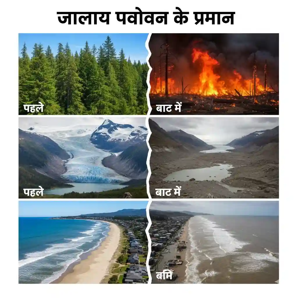 जलवायु परिवर्तन (Climatic change) के विभिन्न प्रमाणों (कारणों) का उल्लेख करें।