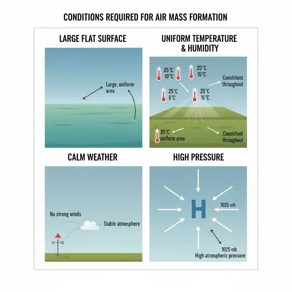 वायु राशियों की उत्पत्ति की परिस्थितियों एवं मुख्य प्रकारों का वर्णन कीजिए।