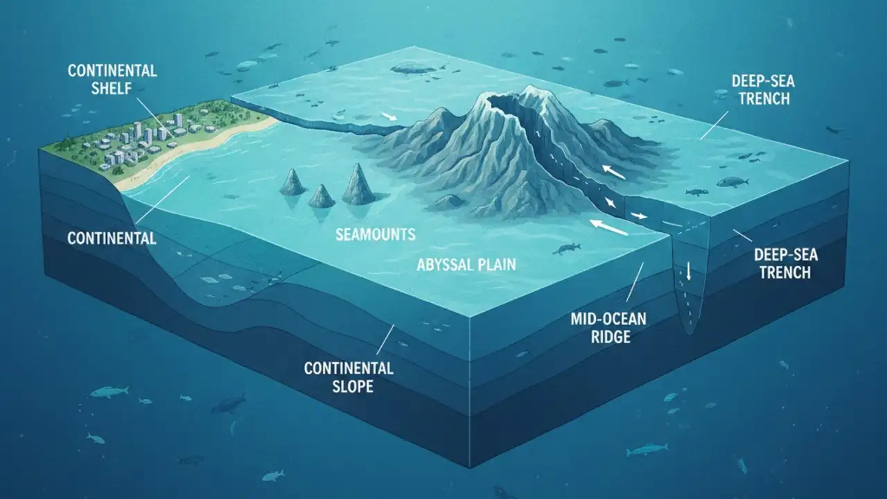 ‘आन्ध्र महासागर की तली के उच्चावच’ (Bottom Relief of oceans) पर एक संक्षिप्त नोट तैयार कीजिए।